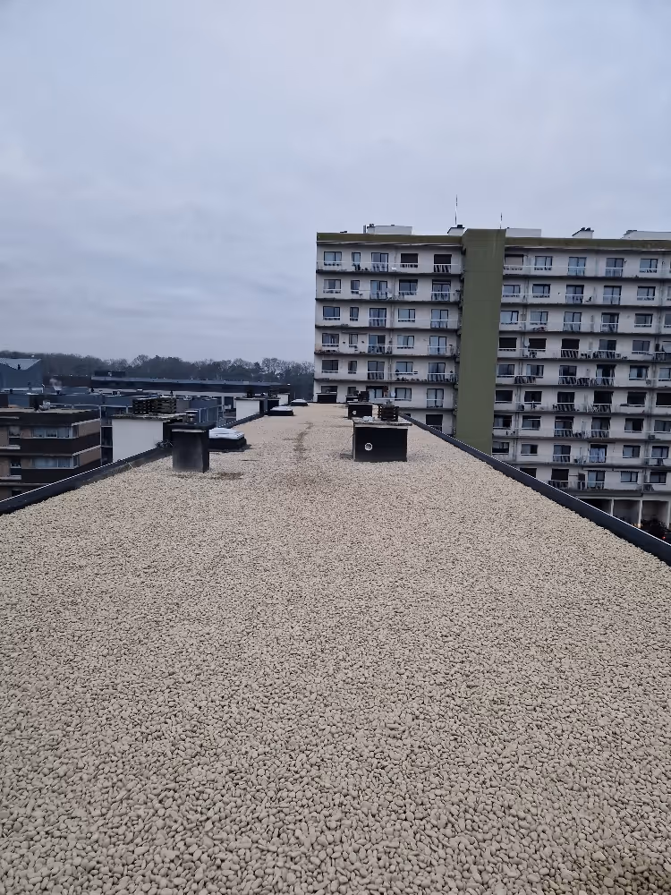 Inconvénient : la durée de vie est légèrement plus proche de la rénovation que de celle d'un toit en forme de selle. Vous pouvez le faire avec un bon entretien. Pensez aux contrôles annuels, au nettoyage des canalisations et aux interventions mineures visant à prévenir les fuites. Dakwerken Crabbé dispose d'une équipe de maintenance sur place pour cela.